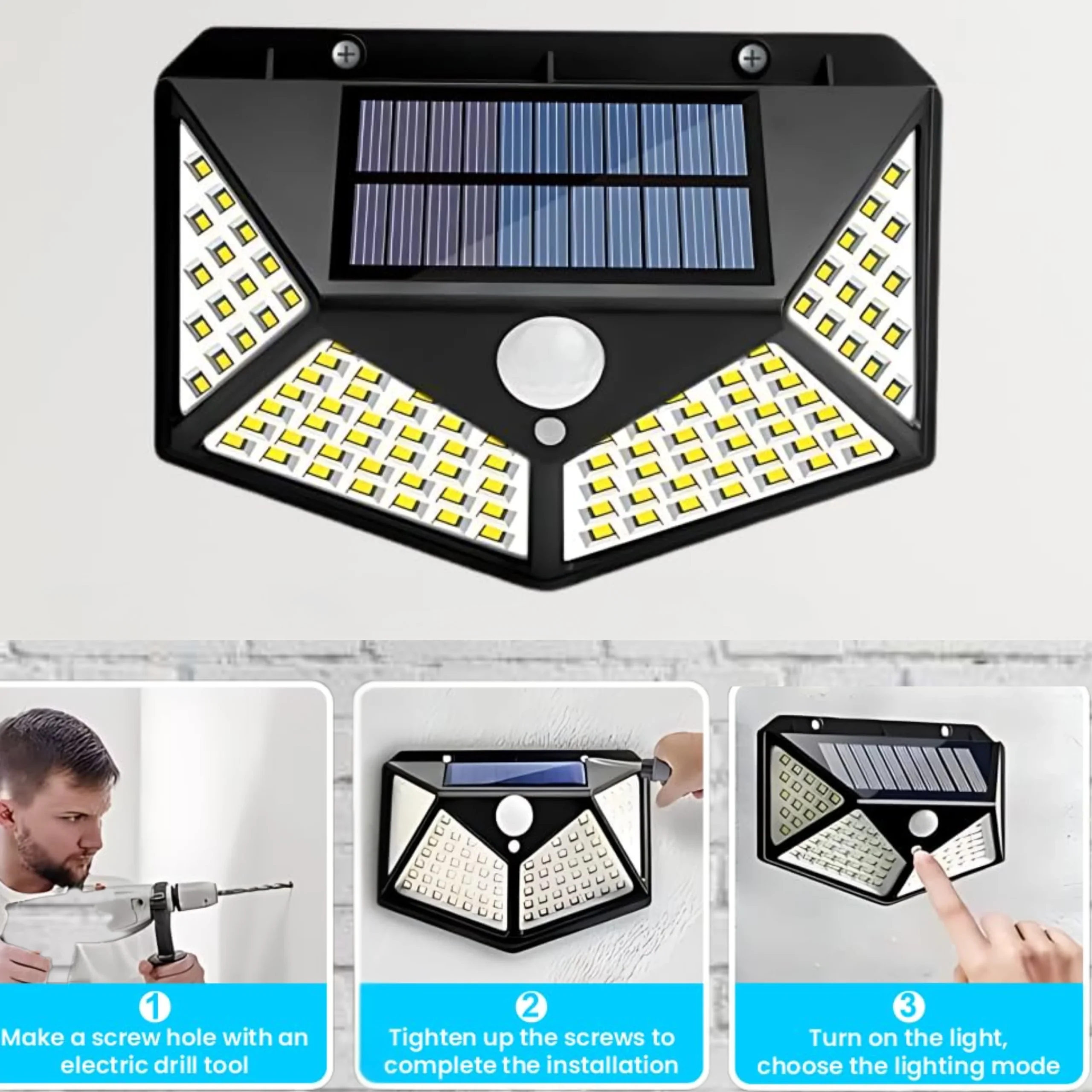 Illuminate your outdoor spaces with the Solar-Powered LED Wall Lamp, a sustainable and energy-efficient lighting solution. This solar-powered lamp charges during the day and automatically lights up at night, providing bright and reliable illumination without increasing your electricity bill. Built with weatherproof and durable materials, it is designed to withstand rain, snow, and harsh outdoor conditions, making it perfect for gardens, patios, driveways, balconies, and fences. Its easy wall-mount installation ensures a hassle-free setup without the need for wiring.